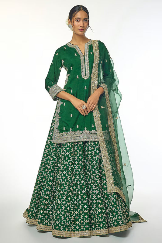 Ready To ShipEmerald Green Embellished Lehenga Set