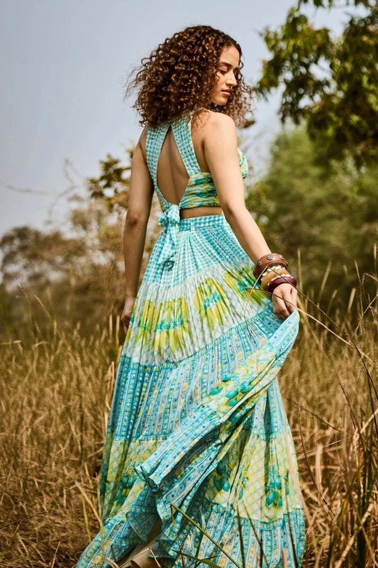 Printed Aqua Green Lehenga Set