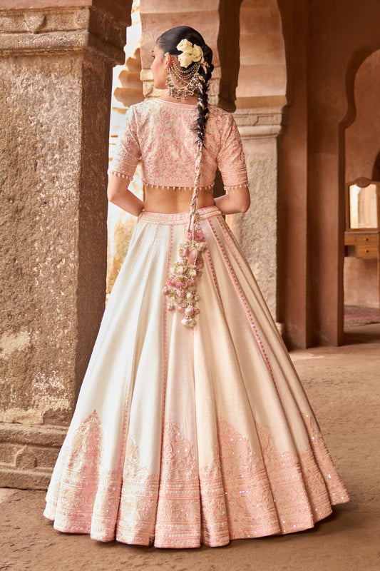 Sayeeda - Daisy Ivory With Pink Embroidered Lehenga