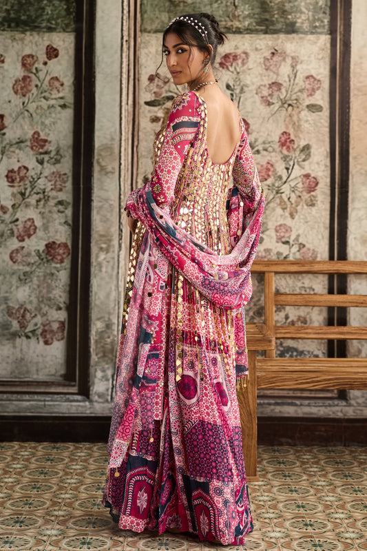 FUSCHIA PRINT AND HIGHLIGHTED ANARKALI SET