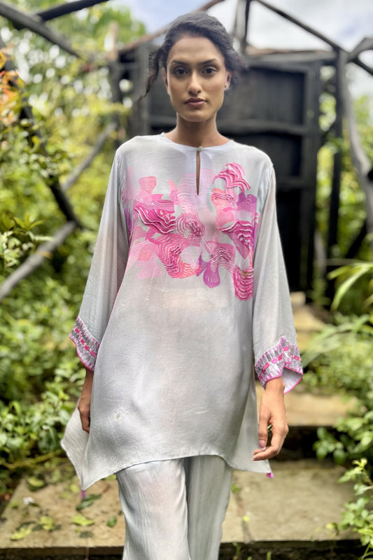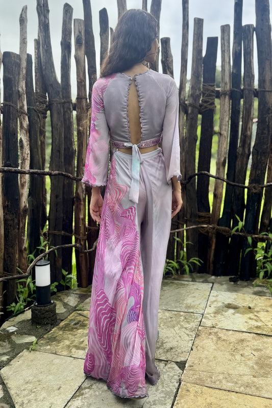 Beige Tussar & Chiffon Printed Co-Ord Set