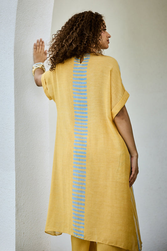 Printed Yellow Linen Kurta set.