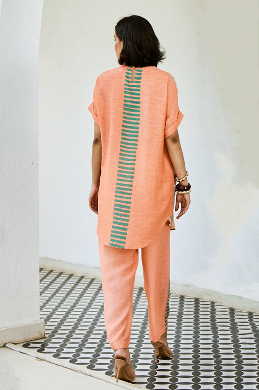 Printed Peach Linen Kurta set