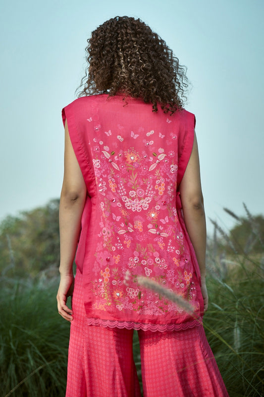 Pink Chiffon Embroidered Co-Ord Set