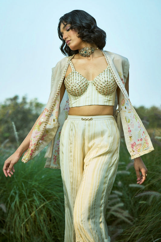 Embroidered Pink Jacket Pant Set