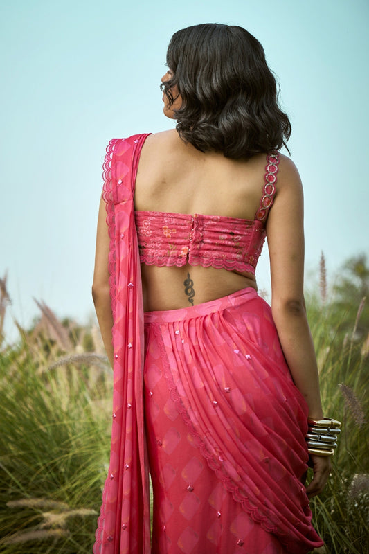 Pink embroided Pre- Draped saree and blouse