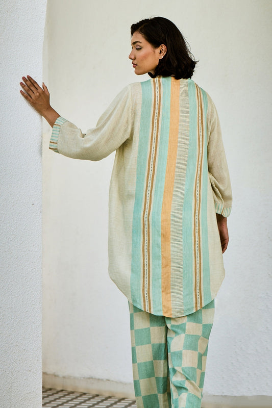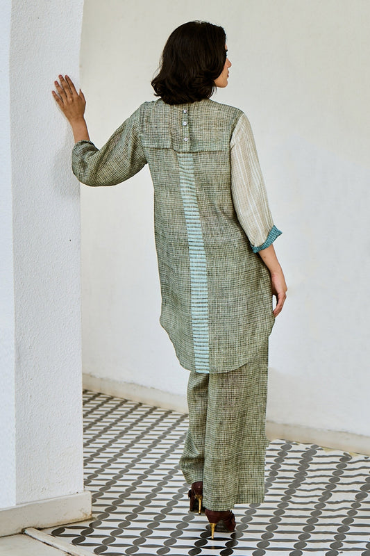 Linen Kurta Set With Checked Pants