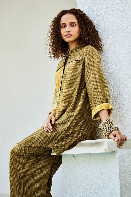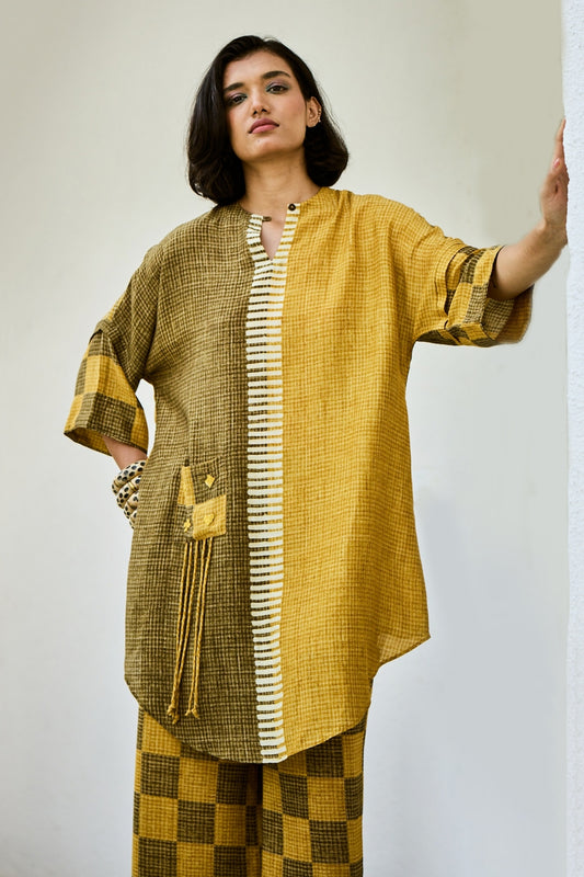 Yellow Green Linen Kurta Set