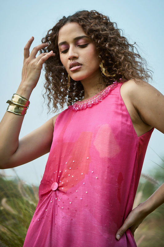 Flowy Gradient Printed Pink Dress