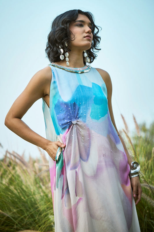 Flowy Blue & off white Radient Dress
