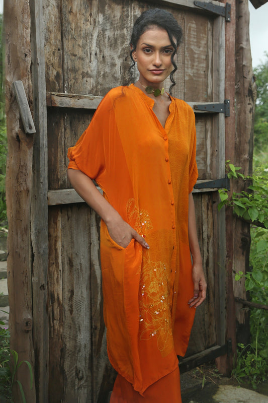 Yellow Chiffon & Linen Silk Co-Ord Set