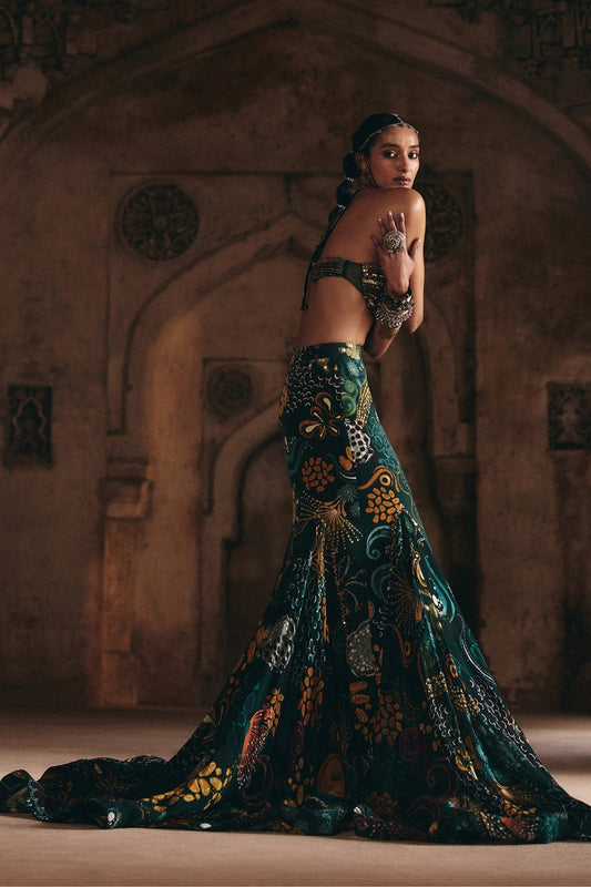 Emerald Green Embellished Mermaid Skirt Set