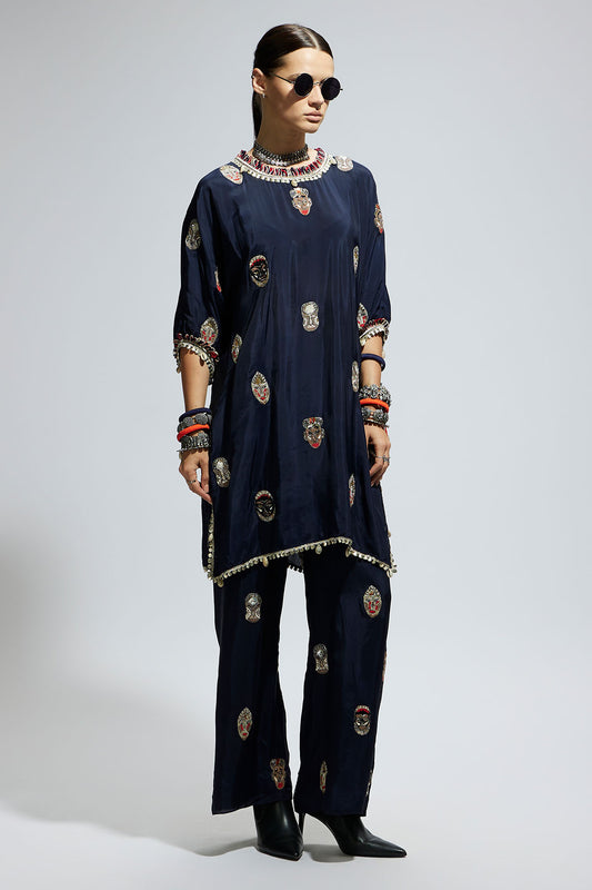 Blue Mask Embroidered Kurta Set