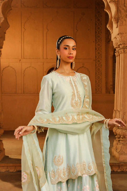 Ayda - Misty Green Kurta with Sharara and Dupatta