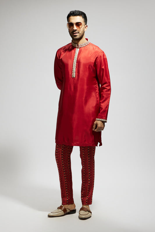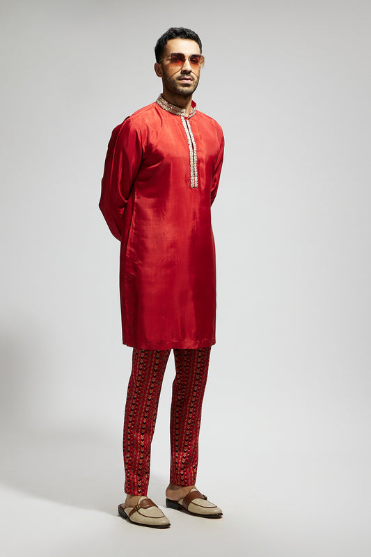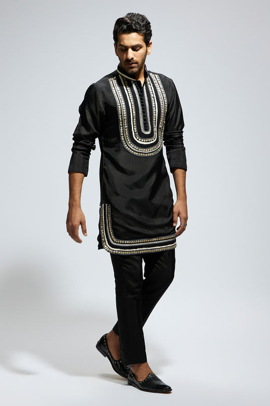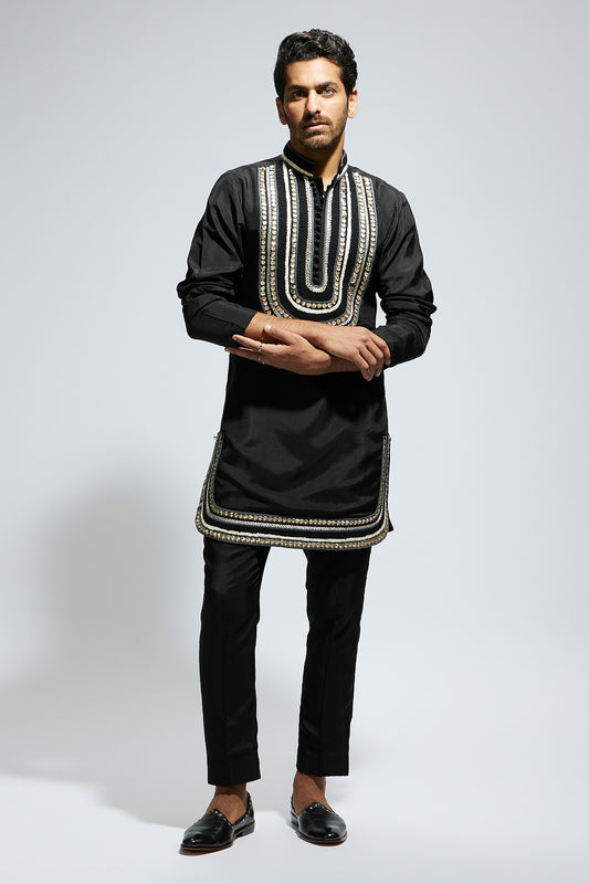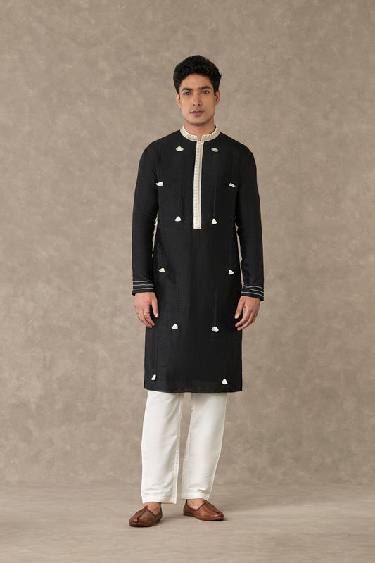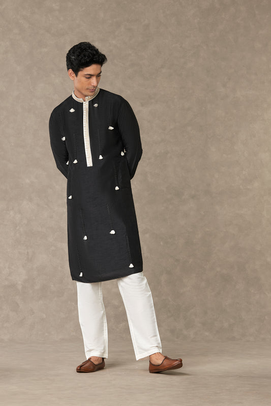 Black Threadwork Yoke Embroidered Kurta with Pants