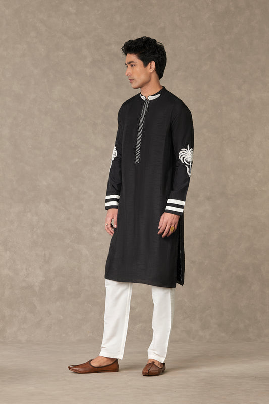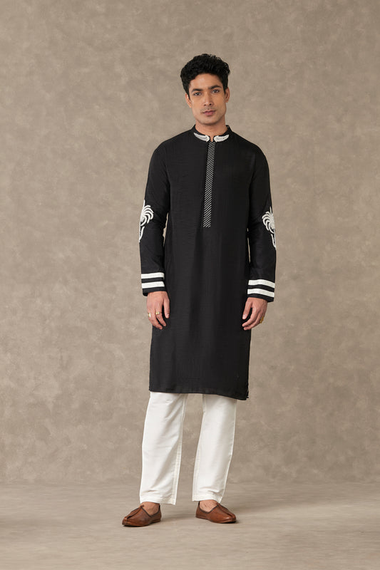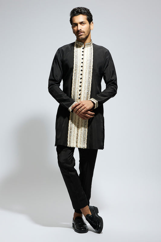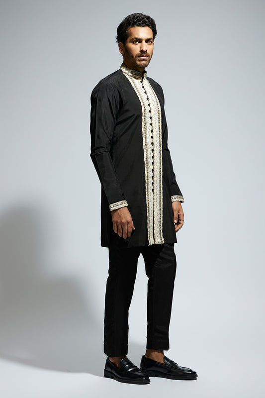Black Front Open Threadwork Embroidered Kurta Paired with Pants