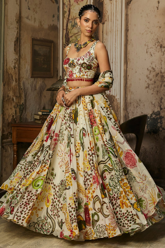 IVORY PRINTED AND HIGHLIGHTED LEHENGA SET