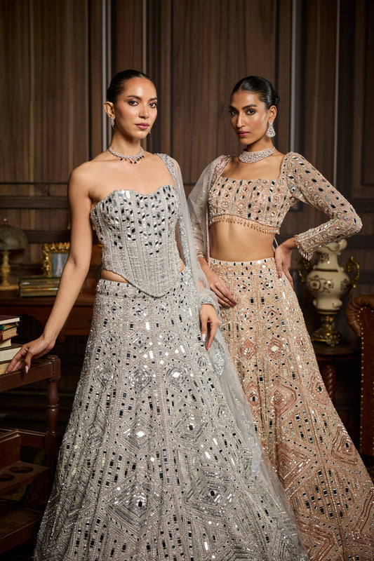 Blush Pink Embellished Mirrorwork Lehenga Set