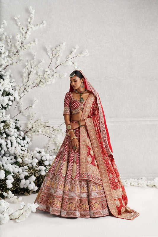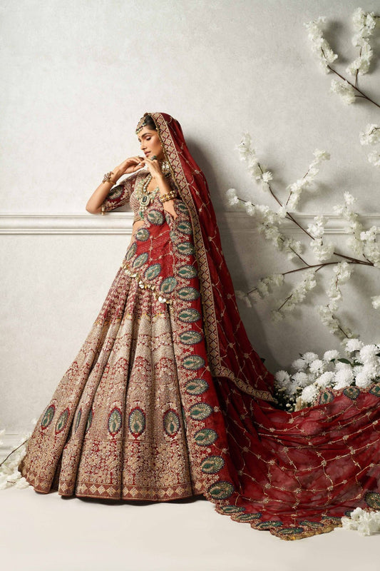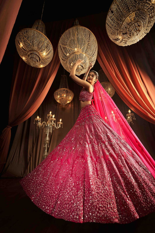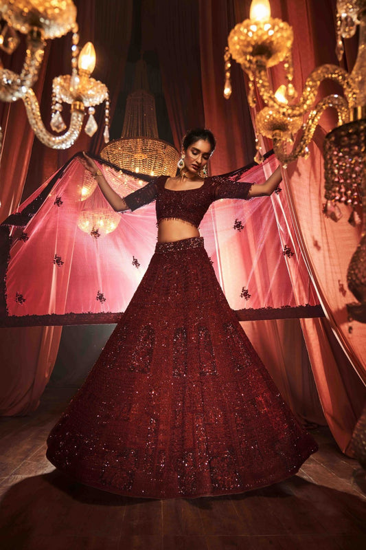 Pearl And Sequin Embroidered Emerald Green Lehenga Set