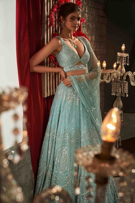 Pastel Icy Mint Hand Embroidered Lehenga Set