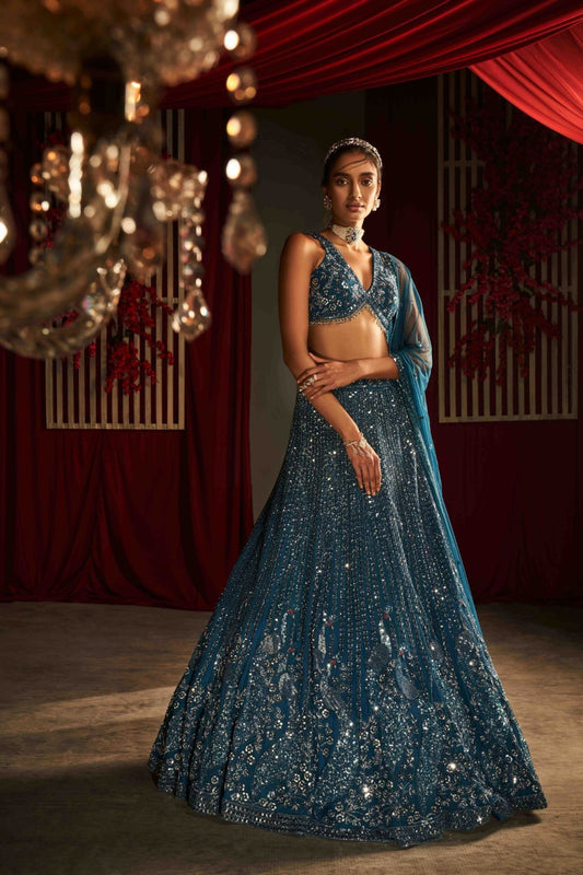 Rama Blue Sequins & Cut Dana Lehenga Set