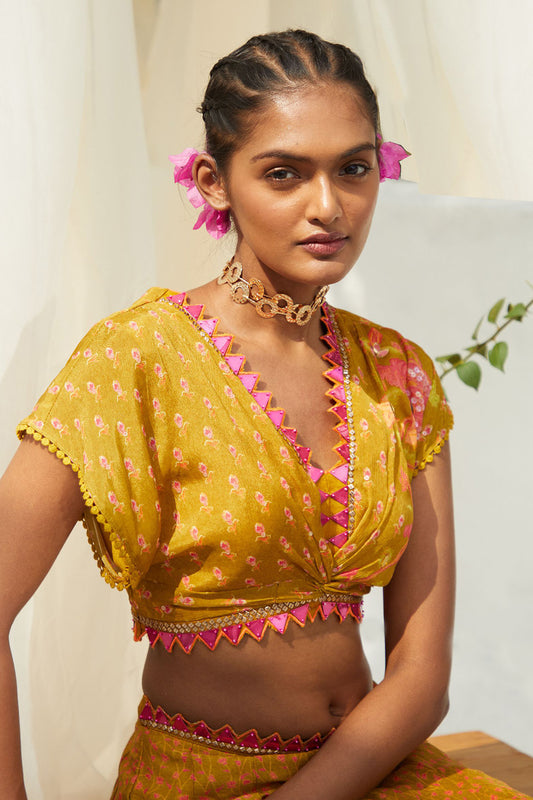 MANGO YELLOW FLORAL PRINT & HIGHLIGHTED SAREE SET