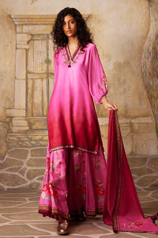 MAROON THIKRI PRINT & HIGHLIGHTED KURTI SET