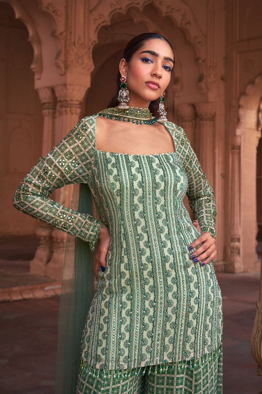 SAGE GREEN GRID PRINT & HIGHLIGHTED KURTI SET