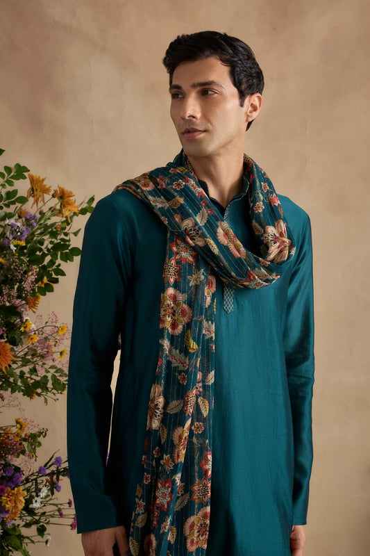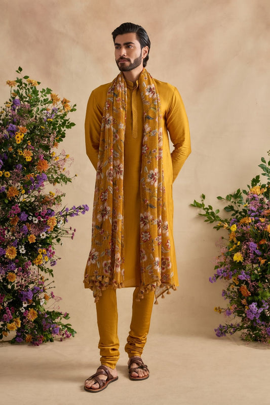 OLIVE GREEN WITH GOLD EMBROIDERED KURTA PAIRED WITH OLIVE GREEN PANTS