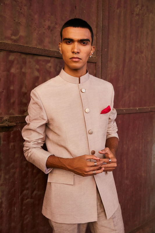Concrete Grey Bandhgala With Pants