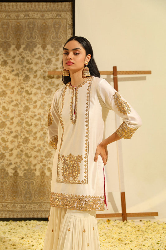 Sadiya - Daisy Ivory Short Kurta with Sharara