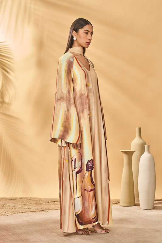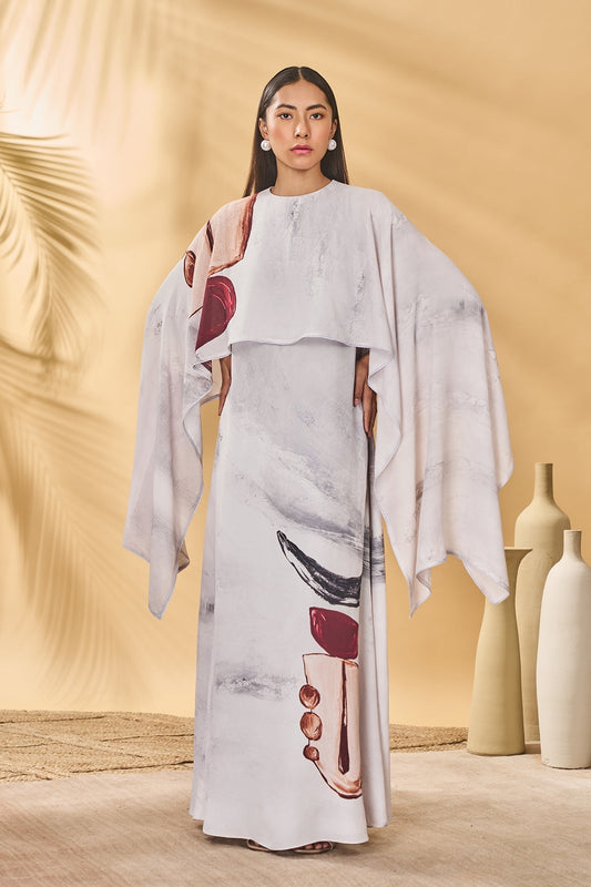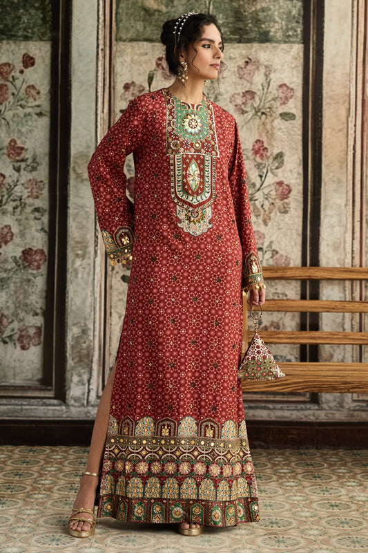 SAGE-MAROON PRINT AND HIGHLIGHTED KAFTAN