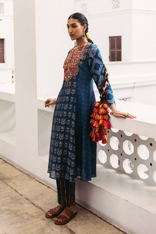 Purple Embroidery Patch Middle Bandhani Printed Kurta Set