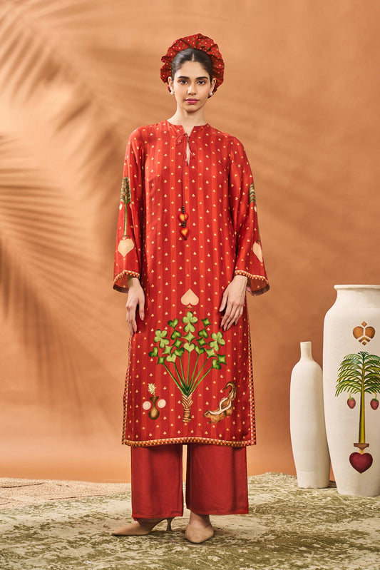 SAGE GREEN TREE OF HEARTS ANGRAKHA KURTA SET