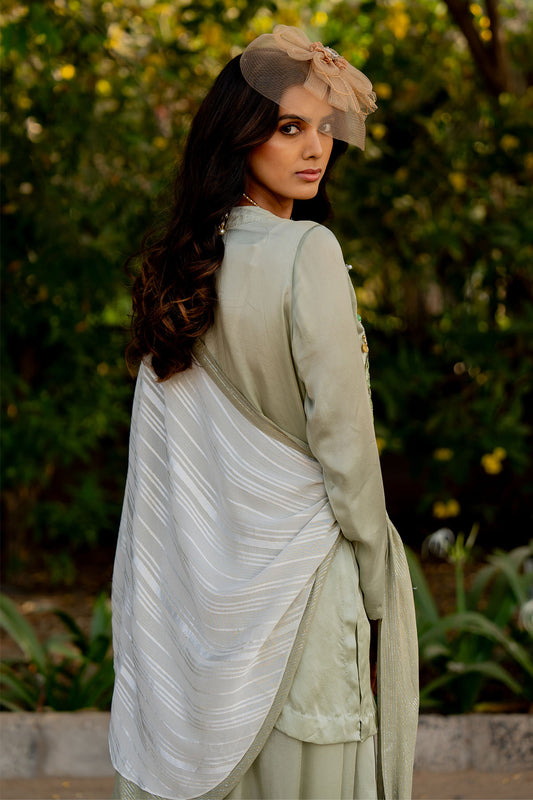 SAGE GREEN GRID PRINT & HIGHLIGHTED KURTI SET