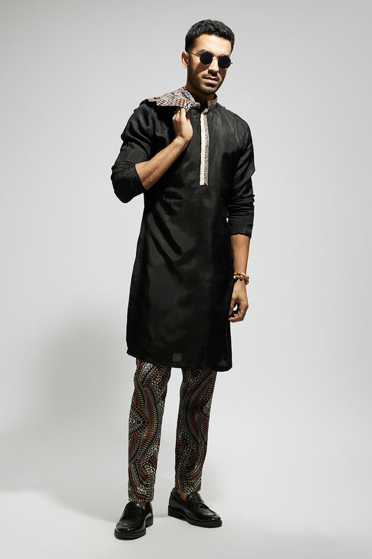 Zentangle Embellished Bundi Paired with Black Kurta and Pants