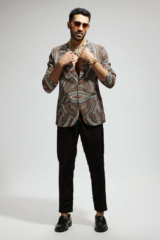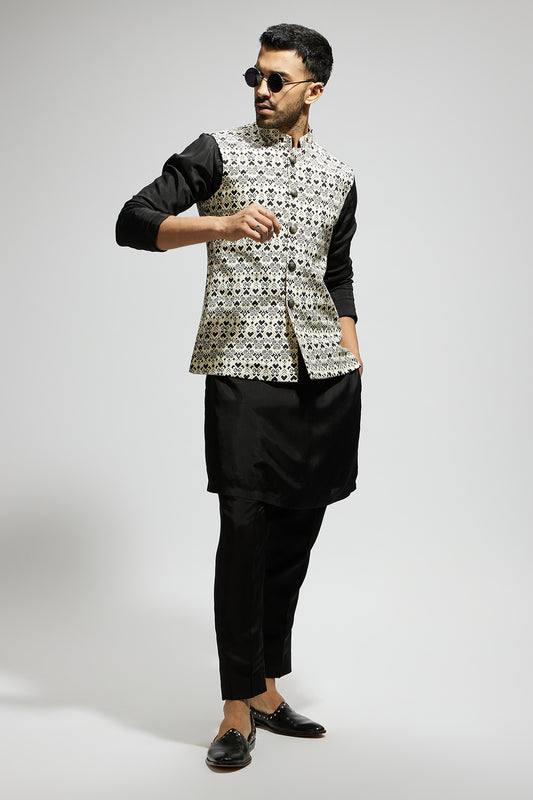 Zentangle Printed Bundi with Black Solid Kurta with Pants