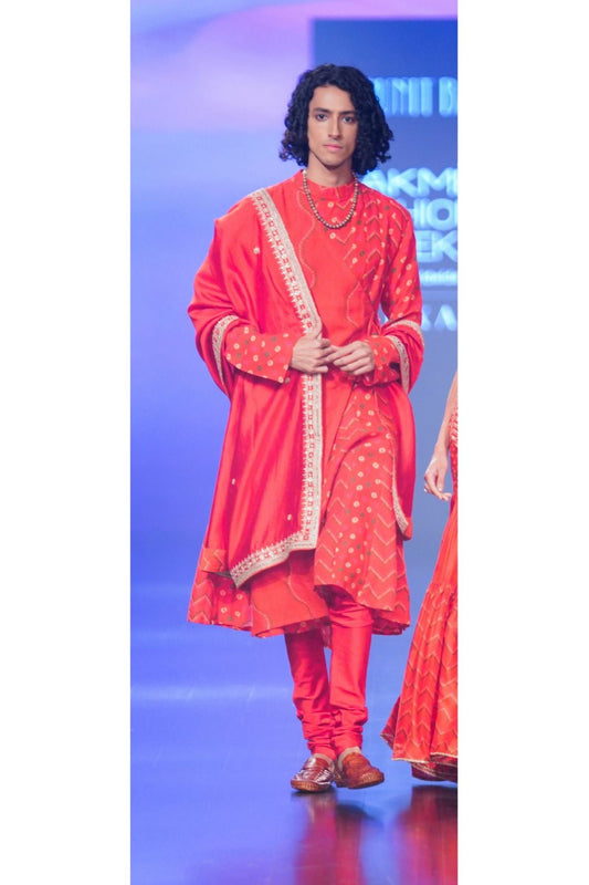 Bandhani Print Angarkha Style Kurta Set With Off Pants