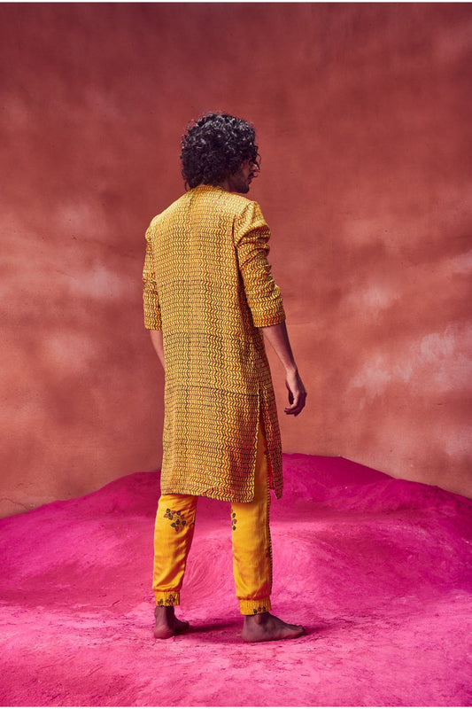 Yellow Printed Kurta With Joggers