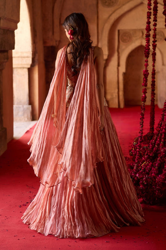 Peach Printed Lehanga