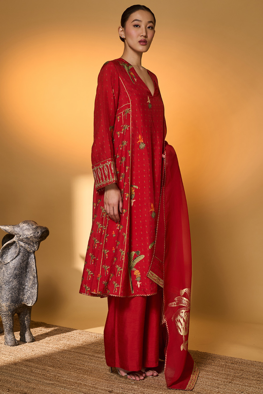 Red Tropical Anarkali Set