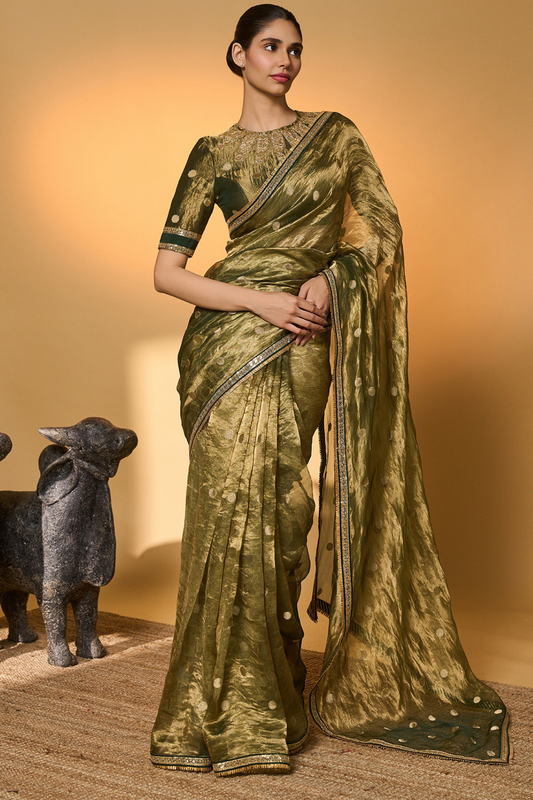 Olive Corncrest Gota Saree