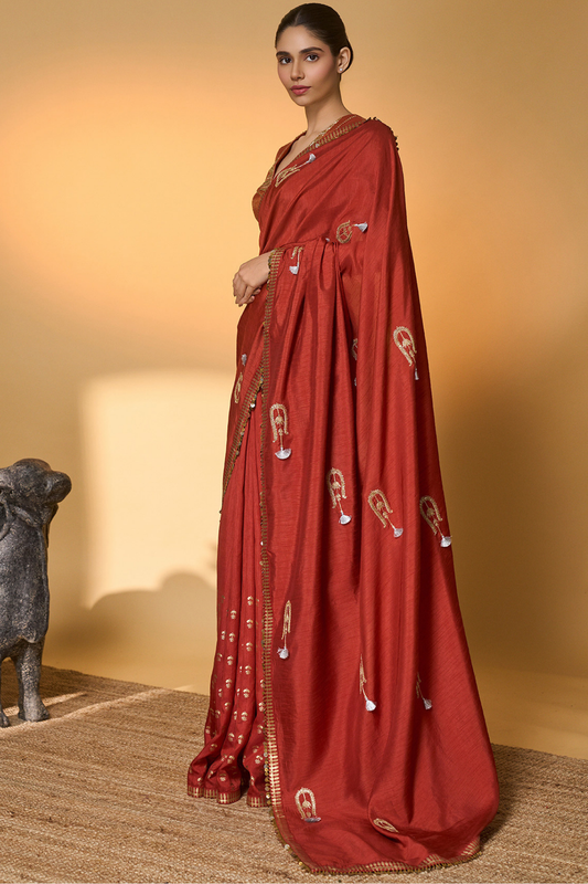 Rust Coastal Crescent Saree