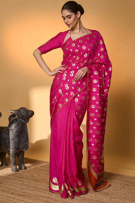 Rani Pink Chand Phool Saree