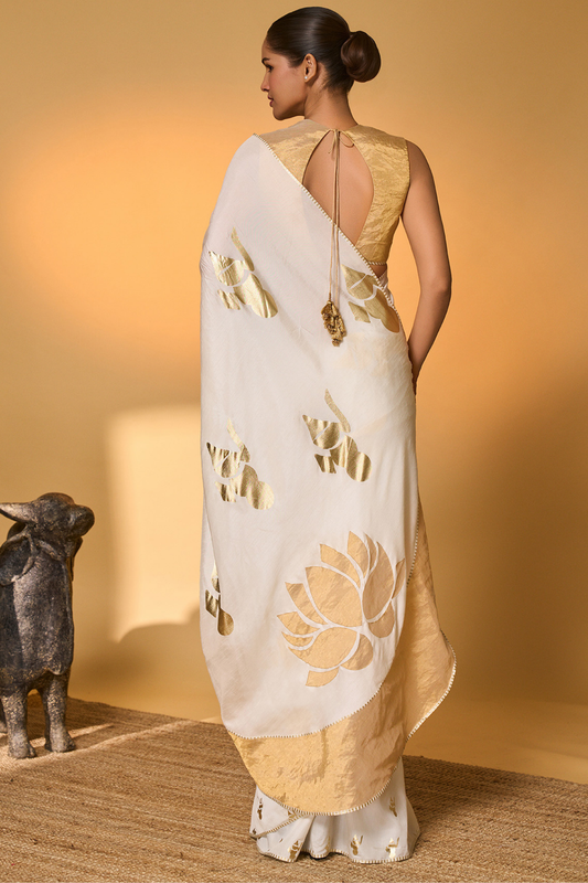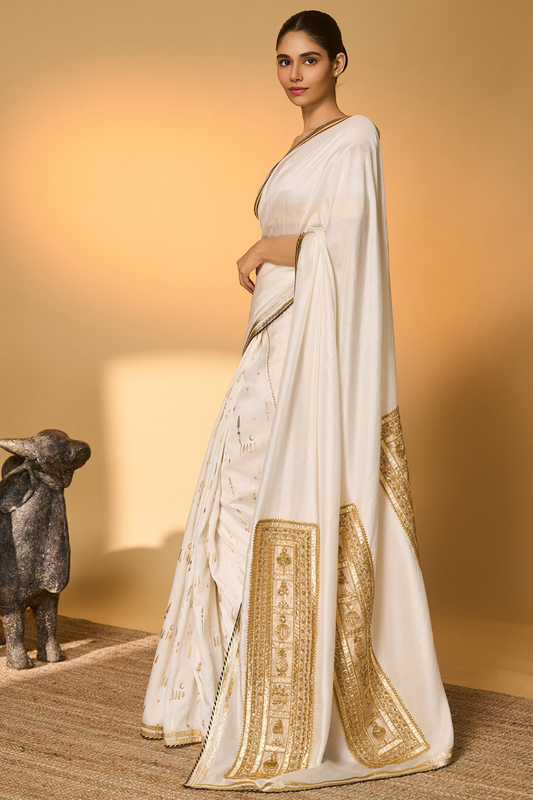 White Moonfield Gota Embroidered Saree