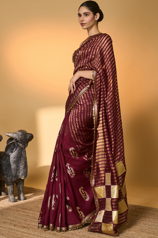Plum Corncrest Gota Saree