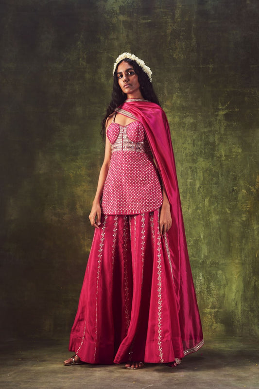 Rani Pink Sharara Paired With Bralette & Dupatta