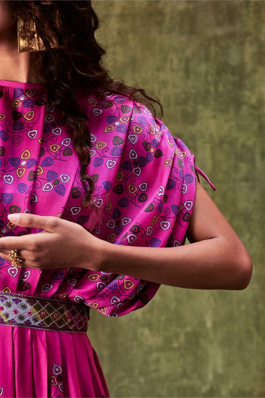 Rani Pink Printed Lehenga Set With Blouse & Dupatta