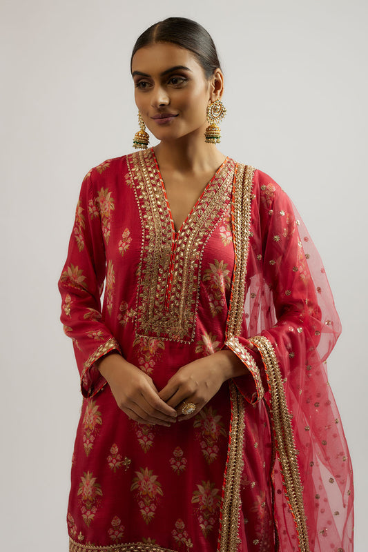 Purple Embroidery Patch Printed Short Kurta with Sharara