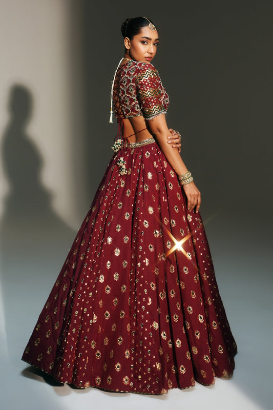 Ready To ShipSCARLET RED PRINTED AND HIGHLIGHTED LEHENGA SET